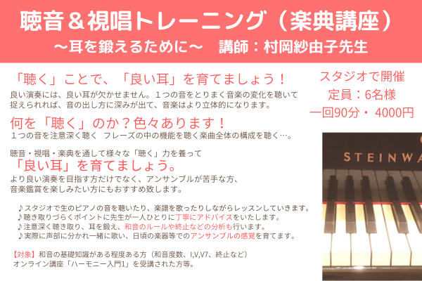- オンライン講座「楽典入門1」については、こちらの新着情報をご覧ください。